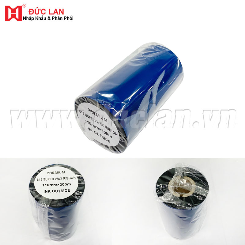 Mực in mã vạch ES12 Premium Wax (110mm x 300m) (rộng x dài), mực bám mặt ngoài (Face Ouside, FO). Wax premium có tỷ lệ resin (chất nhựa) cao hơn mực wax thường nên khả năng bám dính trên vật liệu in tốt hơn nên thường được các doanh nghiệp bán lẻ sử dụng để in tem giá, in nhãn phụ, các đơn vị ngành logistics in tem vận chuyển, tem dán thùng...
